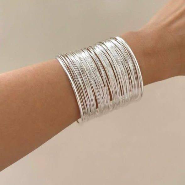 با بنگل نقرهای مدرن، استایلی خاص و متفاوت بساز! این دستبند با طراحی لایهلایه و درخشش نقرهای، مناسب استایلهای روزمره و رسمی است. سبک، خاص و در عین حال فوقالعاده چشمگیر ✨
