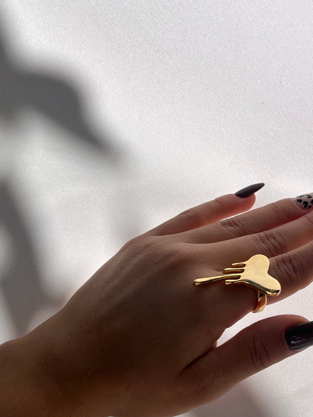 قلب آبشده و فرم نرم و روان این انگشتر، حس لطافت، عشق و خاصبودن را همزمان منتقل میکند. ترکیب فلز طلایی درخشان با طراحی خاص جلوهای مدرن و لوکس ایجاد کرده که بهراحتی با هر استایلی هماهنگ میشود