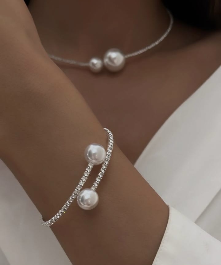 ناموجودست طوق گردن وبنگل و گوشواره مرواریدی فول نگین