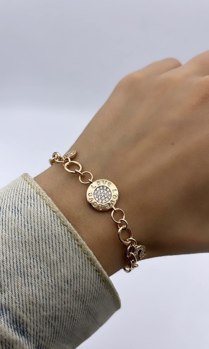 دستبند طلایی ژوپینگ مدل لاو با نگین درخشان